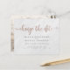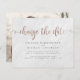 Yikes! Unvorhergesehene Umstände sind schwer zu planen, aber mit diesen Hochzeitskarten können Sie leicht gelassen Ihre Lieben wissen! Mit weißem Marmorboden. Die Worte "das Datum ändern" erscheinen oben in einer Imitat-Rose Gold-Folie-Skript mit süßen Wirbel. Im Rahmen der Auswahl des Haushalts hier auf Zazzle kommen diese Einladungen in begrenzter Größe und in Papiervorräten. Wenn Sie eine andere Größe oder einen anderen Papiervorrat benötigen, kann dieses Design mit dem Design Transfer Tool für weitere Optionen in ein Standardformat übertragen werden.