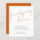 Minimal Script Friendsgiving Dinner Orange Einladung. Für diese Größe (4,5 x 5,6") stehen zwei Papieroptionen im Bereich Budget zur Auswahl. Für dieses Produkt empfehle ich das Halbglas, das ein 110 gsm Kartenstock ist, ähnlich dick wie eine Postkarte. Die Satin Option ist ein viel dünneres Papier 80gsm. Der Standardwert ist Set to semi-glloss. BITTE BEACHTEN SIE, DASS ES EINE pro Blatt gibt. Einfach minimalistischer Stil mit handgeschriebenen Set-Typografie für das Friendsgiving Dinner. Personalisieren Sie die Erholung des Textes einfach mit den Details Ihrer Veranstaltung.