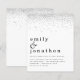 Minimal Silber Glitzer Einladung Hochzeit. Ein Preis SMALLER 4,5" x 5,6" Alternative. Umschläge sind optional und etwas größer als die Kartengröße. Einfach und. Informell sind Ihre Vornamen groß in stilvollen Kleinbuchstaben mit den Details unten. Personalisieren Sie den Text einfach.