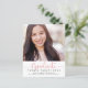 BUDGET Modern Elegant Abschluss Script Foto Ankündigung Postcard mit einem handgeschriebenen Skript des Wortes "Graduate" in mädchenhaft rosa auf einem klassischen weißen Hintergrund. Fügen Sie einfach Ihr eigenes Foto und Details für die perfekte Ankündigung des Abschlusses hinzu. Ideal für Party, Einladungen, ein Haus zu eröffnen, oder einfach nur einen Weg, um Ihren Abschluss zu zeigen! **Unser BUDGET-Papier ist kleiner und zarter, aber trotzdem schön!** Wenn Sie Hilfe oder passende Artikel benötigen, kontaktieren Sie uns bitte unter cedarandstring@gmail.com.
