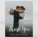 Budget, Modern Hand Lettered Script Wedding Foto Danke Ihnen personalisiert erschwinglichen Low Budget Flyer. Moderne Stilvolle Hochzeit danke Ihnen Papier Vorlage mit einem vollen vertikalen Foto auf der Vorderseite mit dem Text "Danke" in einem riesigen handgeschriebenen Schrift Schrift Schrift Schriftart (Overlay) in Weiß auf dem Bild.