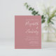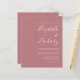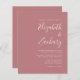 Diese einfache, moderne Hochzeitseinladung mit weißem Text auf einem staubigen Hintergrund der Rose. Fügen Sie die Namen der Braut und Bräutigam in stilvoller Handschrift Kalligraphie und die Details in sans serif Schriftart. Die Rückseite bietet Platz für Hochzeitsdetails auf einem soliden, staubigen Hintergrund der Rose, zusammen mit einem QR-Code, den die Gäste scannen können, um Ihre Website und Ihre UAWG. HINWEIS: Umschläge sind nicht automatisch in diese Einladungen mit dem Budget eingeschlossen. Bitte denken Sie daran, die Option "weiße Umschläge" zu wählen!