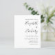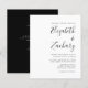 Diese einfache, moderne Hochzeitseinladung enthält viva schwarzen Text auf einem weißen Hintergrund. Fügen Sie die Namen der Braut und Bräutigam in stilvoller Handschrift Kalligraphie und die Details in sans serif Schriftart. Die Rückseite bietet Platz für Hochzeitsdetails auf einem soliden schwarzen Hintergrund, zusammen mit einem QR-Code können Gäste scannen, um Ihre Website und UAWG.