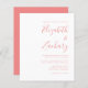 Diese einfache, moderne Hochzeitseinladung mit Korallentext auf weißem Hintergrund. Fügen Sie die Namen der Braut und Bräutigam in stilvoller Handschrift Kalligraphie und die Details in sans serif Schriftart. Die Rückseite bietet Platz für Hochzeitsdetails auf einem soliden Korallenhintergrund, zusammen mit einem QR-Code können Gäste scannen, um Ihre Website und UAWG.