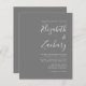 Diese einfache, moderne Hochzeitseinladung mit weißem Text auf grauem Hintergrund. Fügen Sie die Namen der Braut und Bräutigam in stilvoller Handschrift Kalligraphie und die Details in sans serif Schriftart. Die Rückseite bietet Platz für Hochzeitsdetails auf einem soliden grauen Hintergrund, zusammen mit einem QR-Code können Gäste scannen, um Ihre Website und UAWG. HINWEIS: Umschläge sind nicht automatisch in diese Einladungen mit dem Budget eingeschlossen. Bitte denken Sie daran, die Option "weiße Umschläge" zu wählen!
