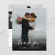 Budget Modernes Kalligraphie Foto Hochzeit Danke Ihnen erschwinglich günstigen dünnen Karte. Moderne Stilvolle Hochzeit danke Ihnen Vorlage mit einem vollen vertikalen Foto auf der Vorderseite mit Overlay "Danke" Text in einem handgeschriebenen swash Schwanz Schriftart Skript in Weiß auf dem Bild. Fügen Sie Ihren individuelle Name und danke Ihnen Nachricht. Wenn Sie lieber Ihre Notiz handschreiben, löschen Sie einfach den Beispieltext, um mehr Platz zu machen. Wenn Sie Hilfe benötigen, kontaktieren Sie bitte Designer!