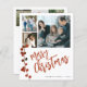 Modern stilvoll Merry Christmas Rot handgeschriebene Kalligrafieschrift 6 Fotos einfache, weiße BUDGET Urlaubskarte mit personalisiertem Text auf beiden Seiten mit einem Aquarellholz-Beeren-Zweig. +++++++++ BITTE BEACHTEN SIE, dass die Hintergrund- und Skriptfarben editierbar sind. Sie können eine dieser Einstellungen ändern, nachdem Sie unter dem IT-Menü PERSONALISIEREN die Option CUSTOMIZE ausgewählt haben. Wenn Sie es sich nicht leicht machen, es zu ändern, frag bitte den Zazzle Live Design Service oder den Designer um Hilfe. ++++++++++++++++++++++++ BITTE LESEN SIE DIES VOR DEM KAUF! Dies ist eine preisgünstige Karte, die auf einem Blatt Papier gedruckt wird (jedes Blatt hat eine Karte). ++++ Für die beste Vergleichspreisqualität empfehlen wir die Auswahl des Semi-Gloss-Papiertyps (es ist dick genug, um für Schreibwaren verwendet zu werden) +++++ Wenn Sie Briefumschläge benötigen, wählen Sie die ENVELOPE OPTION. +++ Doppelter Karo alle Informationen und Rechtschreibungen Ihres Textes, weil Sie genau das erhalten, was Sie sehen - niemand anderes wird vor dem Drucken etwas Karo. ++++ Diese Karte ist für die Größe 4,5" x 5,6" konzipiert. Wenn Sie eine andere Größe der Karte wählen und Text außerhalb der Seite geht, muss alles repariert werden, bevor das Produkt in den Warenkorb aufgenommen wird. Bitte frag Live Design Service für Hilfe.
