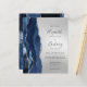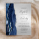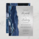 Der links Rand dieser eleganten, modernen Hochzeitseinladung besticht durch eine marineblau-blaue Aquarellgrenze, die mit Imitaten aus silberem Glitzer bestickt ist. Der individuell anpassbare Text kombiniert handgeschriebene Holzkohle, Kupferplatte und kursiv Schriftart auf silberfarbenem Imitat-Hintergrund. Auf der Rückseite ist ein passendes marineblau-silberfarbenes Design erkennbar.