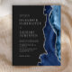 Das elegante, moderne Hochzeitsinklusive besticht durch eine marineblau-blaue Aquarellgrenze, die mit Imitaten aus silberem Glitzer bestickt ist. Der anpassbare Text kombiniert silbergraue Serif-, Copperplate- und kursiv-Schriftart auf schwarzem Schieferboden. Auf der Rückseite ist ein passendes marineblau-silberfarbenes Design erkennbar.