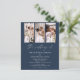 Budget Navy Blau Die Hochzeit von modernen eleganten QR-Code, vier (4) Foto Collage und große Datum Minimalistische Hochzeit Einladung. Die Einladungskarten für Hochzeiten enthalten eine moderne Typografie, die elegant, einfach und modern zu bedienen ist, nachdem Sie minimalistisch einfache Hochzeitsfeier.