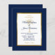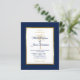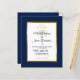 Invite your guests to help you celebrate your special day with this elegant budget wedding invitation featuring modern script, gold and navy blue text including an artistic palm tree and metallic gold frame on the front. A navy blue background is on the front and back of the card. If you need help or a custom order, please contact me.