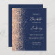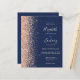 Die links Kulisse dieser eleganten, modernen Hochzeitseinladung besticht durch einen Glitzer mit Pfirsichfarben und Imitaten. Der anpassbare Text kombiniert Pfirsichhandschriften, Copperplate und kursiv Schriftart auf marinebasischem Hintergrund. Die Rückseite bietet Platz für Hochzeitsdetails auf einem massiven marineblauen Hintergrund, zusammen mit einem QR-Code können Gäste scannen, um Ihre Website und UAWG zu besuchen, was die Kosten für den Druck und Versand separater RSVP-Karten rette.