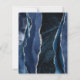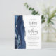 Der links Rand dieser eleganten, modernen Hochzeitseinladung besticht durch eine marineblau-blaue Aquarellgrenze, die mit Imitaten aus silberem Glitzer bestickt ist. Der benutzerdefinierbare Text kombiniert das kohlegraue Kalligraphieskript und serifenlosen Schriftart auf weißem Hintergrund. Auf der Rückseite ist ein passendes marineblau-silberfarbenes Design erkennbar.