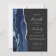 Der links Rand dieser eleganten, modernen Hochzeitseinladung besticht durch eine marineblau-blaue Aquarellgrenze, die mit Imitaten aus silberem Glitzer bestickt ist. Der anpassbare Text kombiniert Handschrift, Copperplate und kursiv silbergraue Schriftart auf dunklem Hintergrund. Fügen Sie zusätzliche Details auf der Rückseite, zusammen mit einem QR-Code, um Ihren Gästen zu helfen, besuchen Sie Ihre Hochzeitswebsite.