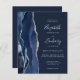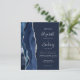 Der links Rand dieser eleganten, modernen Hochzeitseinladung besticht durch eine marineblau-blaue Aquarellgrenze, die mit Imitaten aus silberem Glitzer bestickt ist. Der anpassbare Text kombiniert Handschrift, Copperplate und kursiv Schriftart in hellsilbergrauem, marineblau Hintergrund. Die Rückseite bietet Platz für Hochzeitsdetails auf einem massiven marineblauen Hintergrund, zusammen mit einem QR-Code können Gäste scannen, um Ihre Website und UAWG.