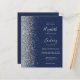 Die links Kulisse dieser eleganten, modernen Hochzeitseinladung besticht durch eine silberne Imitat-Glitzer-Grenze. Der anpassbare Text kombiniert silbergraue Handschrift, Copperplate und kursiv Schriftart auf marinebasischem Hintergrund. Fügen Sie zusätzliche Details auf der Rückseite, zusammen mit einem QR-Code, um Ihren Gästen zu helfen, besuchen Sie Ihre Hochzeitswebsite.