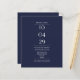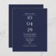 Ein modernes, minimalistisches Budget-Hochzeitseinladungs-Design mit Ihrem besonderen Datum und Ihre Hochzeitsdetails Set in klassischer, schicke Typografie auf marineblau Hintergrund. Entwickelt von Thisisnotme©