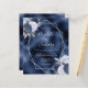Diese elegante, moderne Hochzeitseinladung besticht durch einen silbernen geometrischen Rahmen, der mit staubblauen, marineblau und silberblauen Blumenbouquets auf einer Folie aus marinebasierblauem Imitat verziert ist. Der anpassbare Text kombiniert silbergraue, weißliche Handschrift, Kupferplatte und kursiven Schriftart. Fügen Sie zusätzliche Details auf der Rückseite, zusammen mit einem QR-Code, um Ihren Gästen zu helfen, besuchen Sie Ihre Hochzeitswebsite.