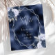 Diese elegante, moderne Hochzeit bewahrt die Dattelkarte mit einem silbernen geometrischen Rahmen, der mit staubblauen und marineblauen Blumenbouquets auf einem seeblauen Imitat-Hintergrund dekoriert ist. Der anpassbare Text kombiniert silbergraue, weißliche Handschrift, Kupferplatte und kursiven Schriftart.
