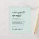 Eine preisgünstige helle Minze grüne Hochzeitsänderung der Veranstaltungsankündigung mit "Hochzeitsaktualisierung neuer Veranstaltungsort" in einer Mischung aus zeitgenössischem Drehbuch und fett-trendiger Typografie (Sie können dies in "neues Datum", "kleinere Hochzeit" usw. ändern). Personalisieren Sie Ihre neue Veranstaltungsnachricht, fügen Sie Ihre Namen in ein signaturähnliches Skript ein und fügen Sie Ihre Hochzeitswebsite auf der Rückseite hinzu oder verließ leer.