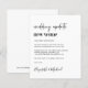 Eine günstige minimale zeitgemäße Neuankündigung der Hochzeitsfeier mit "Hochzeitsaktualisierung neuer Veranstaltungsort", die in einer Mischung aus zeitgenössischem Drehbuch und mutiger trendiger Typografie geschrieben wurde (Sie können dies an "neues Datum", "kleinere Hochzeit" usw. anpassen). Personalisieren Sie Ihre Planungs-Nachricht, fügen Sie Ihre Namen in einem signaturähnlichen Skript hinzu und fügen Sie Ihre Hochzeitwebsite auf der Rückseite oder verlass leer.