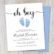 Niedliche preisgünstige virtuelle Baby Boy Dusche Einladung mit "oh boy" in einem stilvollen Skript mit Wimpern und einer pastellblauen Aquarellfarbe von Babyfüßen. Unterhalb können Sie die Duschdetails ganz einfach personalisieren.