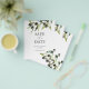 Verkünden Sie Ihre Verlobung mit diesem modernen Budget Save the Date Blatt. Es zeigt meine ursprüngliche Aquarellnasse Olivenzweig Grün. Alle Farben können individuell auf Ihre Hochzeitsfarben abgestimmt werden. Verwenden Sie die Vorlagenfelder, um Ihren Namen und Ihr Hochzeitsdatum anzupassen. Ein elegantes und dennoch botanisches Design für rustikale Hochzeiten. Die passende Suite für Hochzeitsbriefpapier finden Sie unter www.zazzle.com/dotellabelle