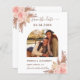 Eine moderne Hochzeit Save the Date Foto Karte. Die Einrichtung besteht aus goldfarbenen Blüten in Rosa und Rose und Pampasgras. Personalisieren Sie Ihr Foto, Ihre Hochzeitsdetails und Ihren eigenen qr-Code auf Ihrer Hochzeitswebsite.