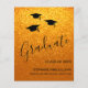 Budget Personalisiert Gold Glitzer Grad Ankündigung. Schicken Sie Ihre Familie und Freunde diese moderne Gold Abschluss-Ankündigungskarte. Dieses Design verfügt über einen goldenen Imitat Glitzer Hintergrund mit Gradkappen in der Luft. Personalisieren Sie mit Ihrem eigenen Namen, Schule und Jahr.