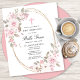 Die elegante und feminine First Communion lädt zu wunderschönen rosa Rosen und weißen magnolischen Blume ein, die einen ovalen goldenen Rahmen zieren. Der gesamte Text ist editierbar, sodass Sie ihn auch für jede Art von religiöser Zeremonie, Taufe, Weihnachten, Dedication oder Bestätigung verwenden können.