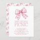 Budget Pink Gingham Bow Baby Shower Picnic. Eine preiswerte Alternative mit einem 4,5 x 5,6 Zoll Glanz, ähnlich dick wie eine Postkarte. Es gibt EINS pro Blatt. . Ein modernes Coquette-Bogen-Design für Ihr Baby-Duschpicknick. Personalisieren Sie den Text ganz nach Bedarf und ändern Sie Text und Hintergrundfarbe, wenn Sie es wünschen, über die Option Weitere bearbeiten. Mit einer Illustration eines rosa Coquette Gingham-Bogen.