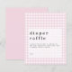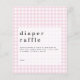 Ein Preis SMALLER 4,5" x 5,6" Alternative. Die SATIN FINISH 80 lb ist ein THINNER PAPIERSTOCK (ideal für Gehäuse wie diese), alternativ in einem SEMI GLOSS 110 lb CARD STOCK (ideal für Einladungen) erhältlich. Umschläge sind optional und etwas größer als die Kartengröße. Pink Gingham Diaper Raffle Gehäuse. Baby Mädchen. Der Header ist groß in stilvollen Kleinbuchstaben, die Details unten auf einer Deckschicht überlagert auf dem Gingham-Hintergrund. Personalisieren Sie den Text einfach auf Ihre eigenen Daten.