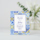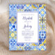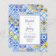 Dieses rustikale Design zeichnet sich durch ein Hintergrundmuster von blauen, gelben und weißen Aquarellen portugiesischen Fliesen oder Azulejos. Personalisieren Sie es mit den Namen der Braut und des Bräutigams in blauem Kalligraphieskript und dem Rest Text in einer Kombination aus Sans Serif, Copperplate und Kursivschrift auf einem blau grenzenden weißen Rechteck. Auf der Rückseite wird ein passendes Fliesenmuster angezeigt. HINWEIS: Umschläge sind nicht automatisch in diese Einladungen mit dem Budget eingeschlossen. Bitte denken Sie daran, die Option "weiße Umschläge" zu wählen!