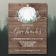 Mit dieser rustikalen Erntedank Einladung laden Sie Ihre Familie und Freunde zu einem besonderen Fest ein. Es ist mit einem weißen Kürbis in Aquarellfarbe und einem Eukalyptusblätterwerk in sanften Grüntönen auf einem Holzboden dekoriert. Passen Sie es mit Ihrem Namen und Ihren Details an. Original Wasserfarbe © Michele Davies.