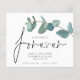 QR Code Wir entschieden uns für ewig Eukalyptus Hochzeit speichern das Datum. Ein Preis SMALLER 4,5" x 5,6" Alternative. Erhältlich in einem SEMI-GLOSS 110 lb CARD STOCK, der die Standardoption (dicker für Einladungen) ist, ODER einem SATIN FINISH 80 lb THINNER PAPER STOCK (ideal für Gehäuse). Fügen Sie Ihren QR-Code auf der Rückseite Ihrer Hochzeitswebsite hinzu, indem Sie den QR-Code des Beispiels ersetzen. Forever in einem informellen Set Skript. Die Erholung des Textes können Sie leicht personalisieren. Text- und Weißhintergrundfarben können geändert werden, wenn Sie über die Option Weitere Einstellungen vornehmen möchten.