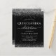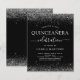 Die preisgekrönten Silver und Black Imitats Glitzer Sparkle Girly Quinceanera Celebration Party Einladungen beinhalten eine wunderschöne und elegante Schrift Typografie für die besondere 15. Geburtstagsfeier.