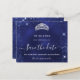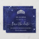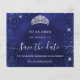 Eine gmädchenhafte und trendige Save the Date-Karte für eine Quinceañera, 15. Geburtstagsfeier. Ein blauer, ungleicher Hintergrund. Dekoriert mit Imitaten Glitzer Staub und ein Tiara, Krone. Der Text: Save the Date ist mit einem großen angesagten, handgeschriebenen Stilskript geschrieben.