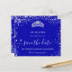 Eine gmädchenhafte und trendige Save the Date-Karte für eine Quinceañera, 15. Geburtstagsfeier. Ein königsblauer Hintergrund. Dekoriert mit Imitaten silbernen Glitzer Staub und ein Tiara, Krone. Der Text: Save the Date ist mit einem großen angesagten, handgeschriebenen Stilskript geschrieben.