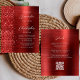 Die links Kulisse dieser modernen Hochzeitseinladung besticht durch einen roten Imitat, der den Glitzer abgrenzt. Der individuell anpassbare Text kombiniert weiße Handschrift, Kupferplatte und kursiv Schriftart auf einem roten Imitat aus gebürstetem Metall. Die Rückseite bietet Platz für Hochzeitsdetails auf einem rot gebürsteten Metall-Hintergrund, zusammen mit einem QR-Code können Gäste scannen, um Ihre Website und UAWG, die die Kosten für den Druck und Versand separater RSVP-Karten rette.