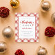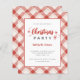 Gastgeber eine budgetfreundliche Ansammlung mit unserer Budget Weihnachtsfeier Party Einladung. Es zeigt "Christmas" in rot handgeschriebener Schrift und "Party" in klassisch grau sans-serif Schriftart. Das karierte Design-Set in Rot und Beige ist der perfekte Ort für Ihre Feier.