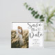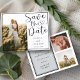 Feiern Sie Ihre Hochzeit mit dieser modernen und eleganten Save the Date-Karte, die mit fett schwarzer Kalligrafie "Save the Date" auf einem knackigen, weißen Hintergrund für ein sauberes, raffiniertes Aussehen besticht. Dieses stilvolle Template bietet Platz für ein beliebtes Foto auf der Vorderseite und zwei weitere auf der Rückseite und eignet sich somit hervorragend, um Ihre Liebe zu zeigen. Ideal für minimalistische, klassische und zeitgenössische Hochzeiten. Vollständig anpassbar mit Ihren Namen, Hochzeitstermin und Ort, um eine personalisierte und unvergessliche Ankündigung zu erstellen.