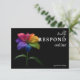A sleek and modern RSVP card from the Technicolor Love collection, designed in a clean horizontal format that feels contemporary, simple, and effortless for guests to use. The signature rainbow lily adds a vibrant burst of colour along one side, creating a bold, cohesive look that pairs beautifully with the rest of your suite.