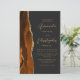 Die links Kulisse dieser eleganten, modernen Hochzeitseinladung besticht durch einen gelben, mit Imitaten vergoldeten Glitzer in Orange und Rost geschliffenen Wasserfarben. Der anpassbare Text kombiniert goldfarbenes Skript und singt serifenlose Schriftart auf schwarzem Hintergrund. Die Rückseite bietet Platz für Hochzeitsdetails auf einem soliden schwarzen Hintergrund, zusammen mit einem QR-Code können Gäste scannen, um Ihre Website und UAWG, die die Kosten für den Druck und Versand separater RSVP-Karten rette.