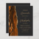 Die links Kulisse dieser eleganten, modernen Hochzeitseinladung besticht durch einen gelben, mit Imitaten vergoldeten Glitzer in Orange und Rost geschliffenen Wasserfarben. Der anpassbare Text kombiniert goldfarbenes Skript und singt serifenlose Schriftart auf schwarzem Hintergrund. Die Rückseite bietet Platz für Hochzeitsdetails auf einem soliden schwarzen Hintergrund, zusammen mit einem QR-Code können Gäste scannen, um Ihre Website und UAWG, die die Kosten für den Druck und Versand separater RSVP-Karten rette.