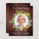 Moderne Aquarell Sonnenblumen Blume und Eukalyptus Beileid Foto Beerdigung Dankeschön Karten. Diese Beerdigungskarten sind mit einer einzigartigen Fotovorlage in Sonnenblumen und Eukalyptus-Grünkranz, Namen und Daten in rustikalem Holzdesign ausgestattet. Personalisieren Sie Ihre Rückmeldung mit Ihrer Dankesbotschaft. Diese Gedenkkarten eignen sich hervorragend für die Begräbniskarten, oder für die Feier des Beileids dank der Dankkarten. COPYRIGHT © 2020 Judy Burrows, Black Dog Art - Alle Rechte vorbehalten. Budget Rustic Beileid Beerdigung Danke Ihnen Sonnenblume