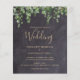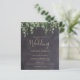 Invitation vos amis et votre famille à votre mariage avec ces ardoises de tableau rustique avec eucalyptus, cartes postales faire-part de mariage élégantes mais décontractées. Ces cartes de faire-part de mariage budgétaires ont une option d'enveloppe. Personnalisez avec les noms, la date du mariage, l'emplacement et toute autre information. Ajoutez le site Web et toute autre information au verso. Ces invitations uniques à des mariages verdoyants feront une impression durable. DROIT D'AUTEUR © 2020 Judy Burrows, Black Dog Art - Tous droits réservés. Budget Rustic Green Feuilles Faire-part de mariage