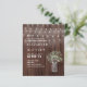 Set den Ton für Ihr Country-Fest mit diesen rustikalen Hochzeitsartikeln, die einen warmen Holzboden, leuchtende Saitenlichter und charmante Mauerkirschen bieten. Dieses rustikale Design ist perfekt für Stallhochzeiten, Feiern im Freien oder gemütliche Abend-Zeremonien geeignet und schafft eine einladende und romantische Atmosphäre. Passen Sie Ihre Namen, Ihre Hochzeitsdetails und Ihre Veranstaltungsinformationen an, um die perfekte Einladung / Schreibwaren zu gestalten, die Ihren rustikalen Stil widerspiegelt.