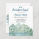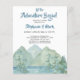 Billig rustikale Berge Aquarellabenteuer Baby Dusche Einladung. Rustikale Berge und Bäume Szene Aquarell "Lass the Adventure Begin" Paare blau und grün Babydusche Design. Ideal für das Paar, das Lieben Abenteuer und kann es nicht erwarten, auf ihr bestes Abenteuer, mit ihrem Baby zu nehmen! Das Design ist eine Aquarell mit Bergen, See und Wald.