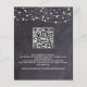 Mit diesen eleganten und rustikalen Chalkboards und Streichellichtern laden Sie Freunde und Familie zu Ihrer Hochzeit ein. Diese einzigartige Schieferplatte in einer Hochzeitseinladung bietet elegante weiße Saitenleuchten auf grauem Tonschiefer-Design mit Hochzeitswebsite qr-Code für leichte UAWG. Personalisieren Sie diese Chalkboard-Hochzeitseinladungen mit Namen, Hochzeitstag und Ort. Sehen Sie sich unsere Hochzeitskollektion an, um Einladungen, Hochzeitsalben, Gastbücher, Party-Geschenke und vieles mehr zu erhalten! COPYRIGHT © 2020 Judy Burrows, Black Dog Art - Alle Rechte vorbehalten. Budget Rustikale Slate String Lights QR Code Wedding