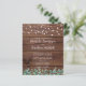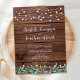 Freuen Sie sich auf Ihre Hochzeit mit eleganten und rustikalen Holzmöbeln mit Lichtern und Eukalyptusgrün. Diese einzigartigen rustikalen Grödner Hochzeitsfeierlichkeiten bieten elegante weiße Saitenleuchten auf Stallholz mit botanischem Grün. Personalisieren Sie diese rustikalen Hochzeitseinladungen mit Namen, Hochzeitsdatum und Ort. Sehen Sie sich unsere Hochzeitskollektion an, um Einladungen, Hochzeitsalben, Gastbücher, Party-Geschenke und vieles mehr zu erhalten! COPYRIGHT © 2020 Judy Burrows, Black Dog Art - Alle Rechte vorbehalten. Budget Rustikale String Lights Eukalyptus Wedding Inv